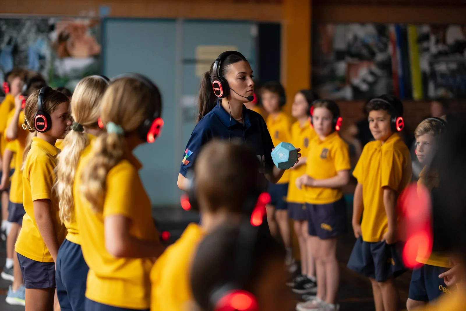 The headphones create a unique experience for students as the only voice they can hear in the lesson is from our staff, guiding them through activities.